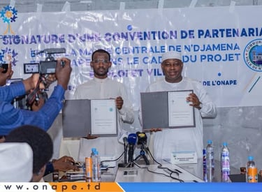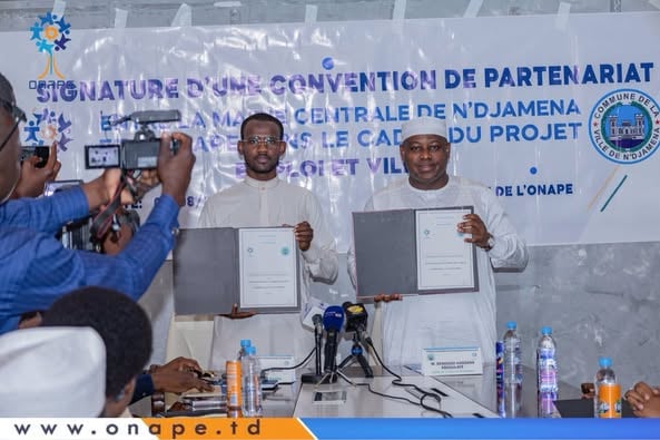 Le 6 août 2025, la Mairie centrale de N’Djamena et l’ONAPE ont signé une convention de partenariat dans le cadre du projet « Emploi et Ville », visant à promouvoir l’emploi des jeunes et la transition écologique